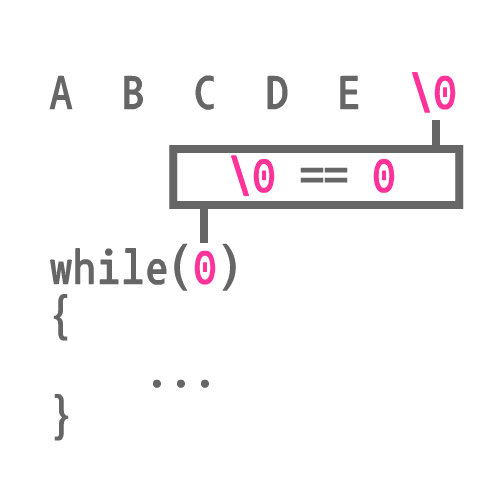 그리고 ASCII 코드에서 ' \0(NUL) '은 정수로 0이다.
