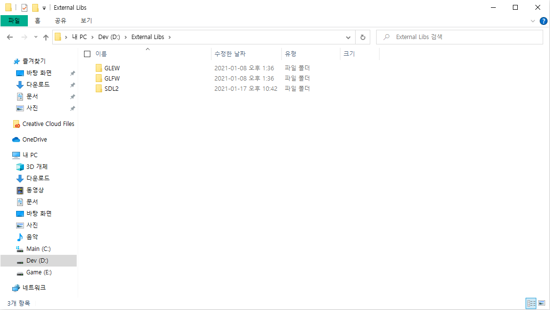 추가 라이브러리들을 관리하는 폴더에 SDL2로 정리해둔다.