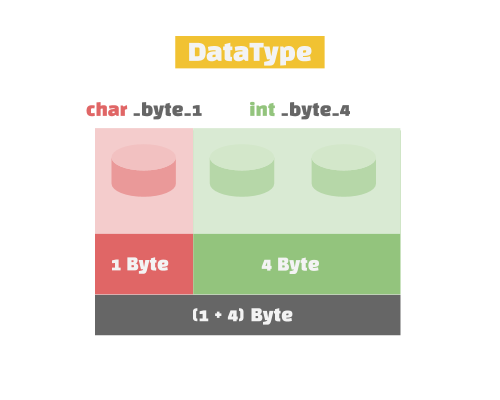 구조체 DataType에 소속되어있는 char형은 1Byte, int형은 4Byte 메모리를 필요로 한다.
