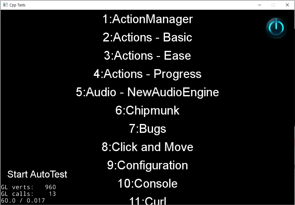 Cocos2D-X 기능과 예시를 보려면 test 프로젝트를 빌드하라.