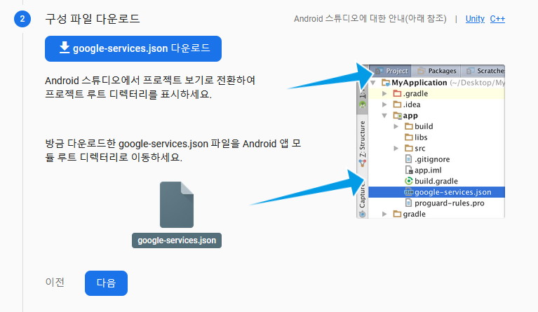 ▼ 누가 봐도 내려받고 싶은 버튼을 눌러서 google-services.json을 내려받는다.