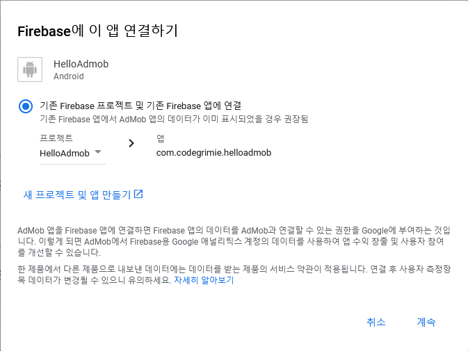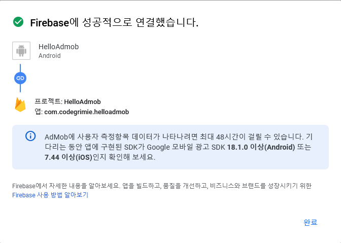 구글 애드몹(Admob)을 사용하기 위해서는 파이어베이스(Firebase) 프로젝트를 먼저 생성해야한다.