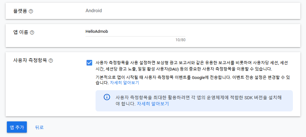 그런데 Admob이 애널리틱스를 사용해야 연동할 수 있어서 다시 수정해줘야만 했다.