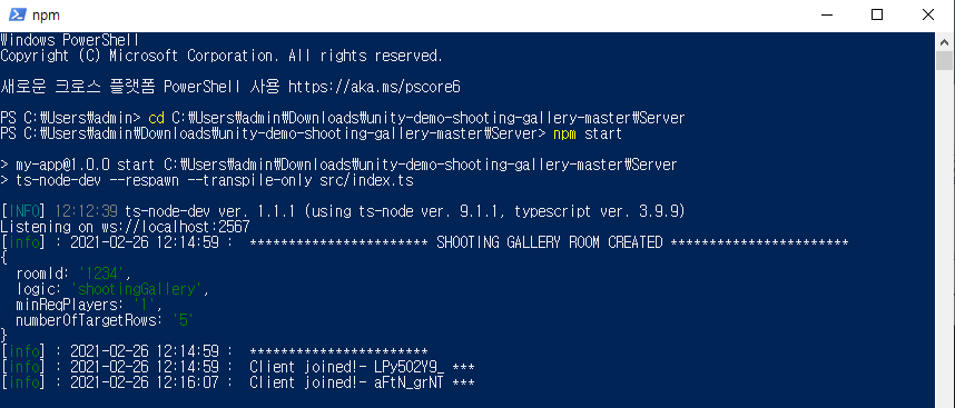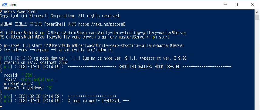 윈도우 플랫폼으로 빌드해서 클라이언트 두 개를 각각 실행해서 멀티 플레이가 정상적으로 작동하는지 테스트할 수 있다.
