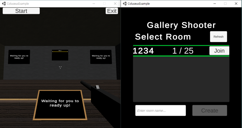 ▼ 하나의 클라이언트에서 멀티플레이 방을 생성한다.