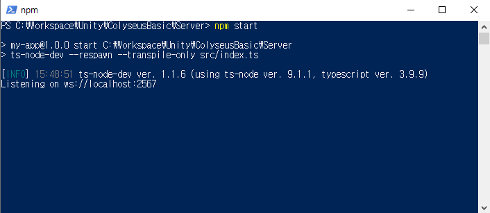 조심해야 할 점은 colyseus-app까지 명령어라서 임의로 변경하면 안 된다.